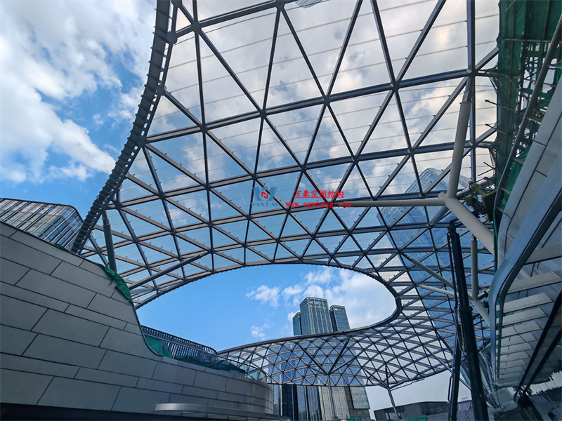 紹興華發(fā)金融活力城ETFE膜結構商業(yè)天幕工程位于浙江省紹興市,該項目ETFE膜結構展開面積約4100平方米。