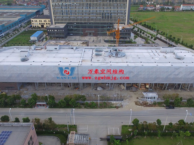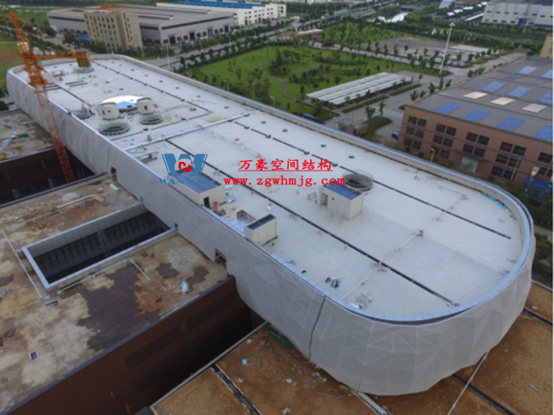 寧波菲仕展廳外立面網(wǎng)格膜結構項目,方案由意大利著名建筑師設計,設計靈感取鉆石之意。為了實現(xiàn)多變的設計效果,整個外立面采用了8000根形狀各異的鋼構件,每根桿件單獨編號、定位,實施難度極大。外層使用PTFE網(wǎng)格膜,樹立了PTFE網(wǎng)格膜使用的新標桿。用鋼量880噸,PTFE膜展開面積12660平方。