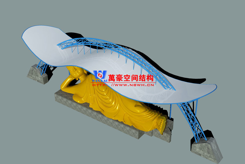 橫店釋伽牟尼大佛膜結(jié)構(gòu)雨棚位于橫店影視城內(nèi),主要是給大佛加一個(gè)雨棚,起到遮陽擋雨的作用,讓釋伽牟尼佛像減少自然環(huán)境的侵蝕。以上就是大佛膜結(jié)構(gòu)雨棚的效果圖,大家可以看一下。