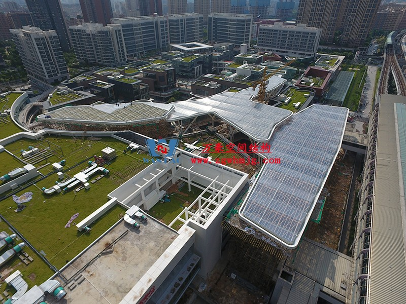 深圳龍華地鐵站ETFE天幕項目由我公司負責設計及承建,項目由4個出入口單體組成,ETFE展開面積9000平米,二次鋼結構120噸,結構落柱采用目前最流行的樹形節(jié)點支撐,在結構安全的同時更具層次感。同時該項目也完美突出了ETFE膜材高透光、高自潔性及耐高溫的優(yōu)點。