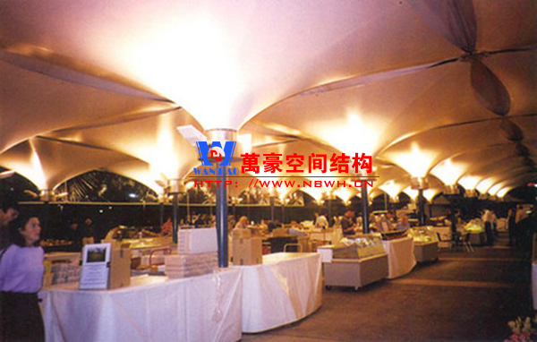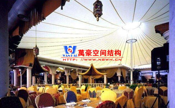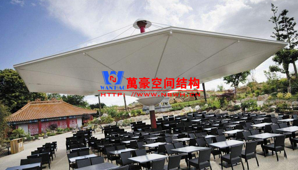 餐廳膜結(jié)構(gòu)建筑主要包括戶外餐廳膜結(jié)構(gòu)和室內(nèi)餐廳膜結(jié)構(gòu)。戶外餐廳膜結(jié)構(gòu)形式多樣,有的是整個(gè)覆蓋在餐廳之上的膜結(jié)構(gòu),有的是覆蓋某片固定區(qū)域做為用餐區(qū)的膜結(jié)構(gòu),還有的采取一桌一頂棚的形式存在,主要功能是遮陽(yáng)擋雨作用。室內(nèi)餐廳膜結(jié)構(gòu)建筑主要分為頂棚膜結(jié)構(gòu)和裝飾膜結(jié)構(gòu)兩種,主要起到裝飾作用,增加環(huán)境的美感。