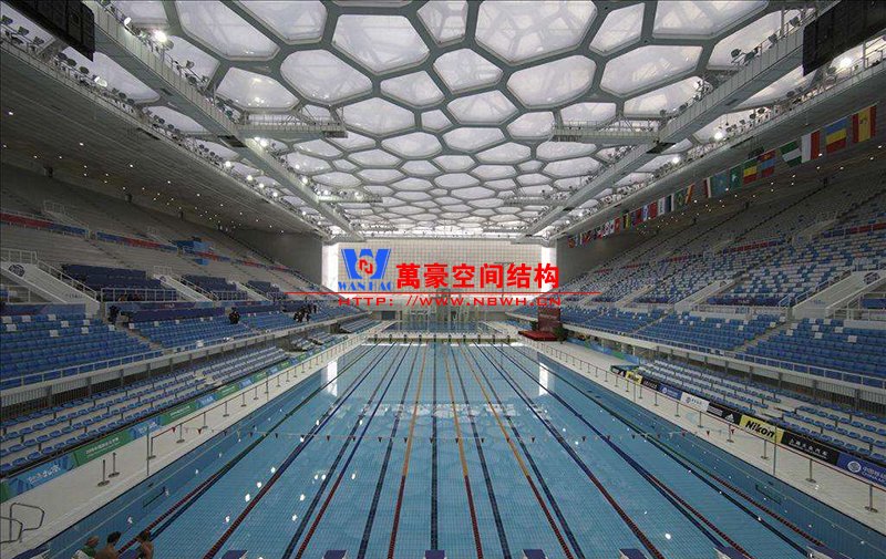 遠(yuǎn)處觀看“水立方”,這個(gè)建筑是美麗又富詩意的,它結(jié)合了泡沫和水的設(shè)計(jì)理念,具象化了抽象集幾何理論,它是一個(gè)裝滿泡泡的盒子。當(dāng)然充氣式膜結(jié)構(gòu)的應(yīng)用還有很多很多,大到鳥巢體育中心,小如普通的膜結(jié)構(gòu)車棚等。