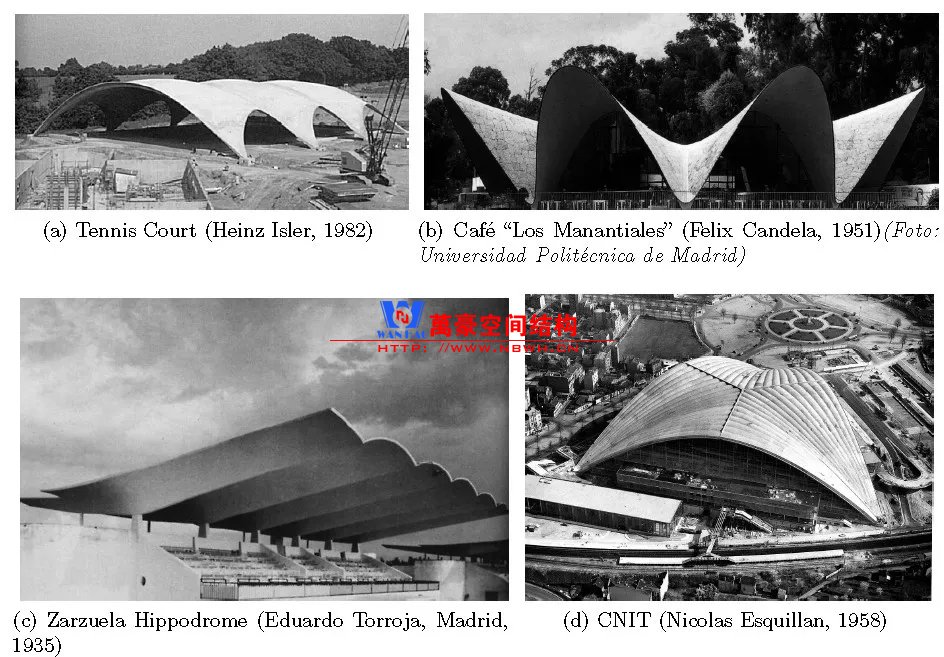 說(shuō)網(wǎng)殼結(jié)構(gòu),就得從混凝土薄殼開始說(shuō)起。在20世紀(jì)中葉,混凝土薄殼蓬勃發(fā)展。EduardoTorroja,F(xiàn)elix Candela,Nicolas Esquillan,Heinz Isler等在世界各地都實(shí)踐了很多混凝土薄殼作品。他們的殼體纖薄明快,放到現(xiàn)在看也都是建筑與結(jié)構(gòu)融合的精品。