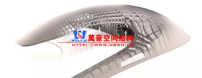 可能是因為桁架高度小,用開洞的空腹形式更易于實施,建筑造型優(yōu)美。表皮為不銹鋼板,厚度10mm-30mm,屋面1400平米,425t不銹鋼。
