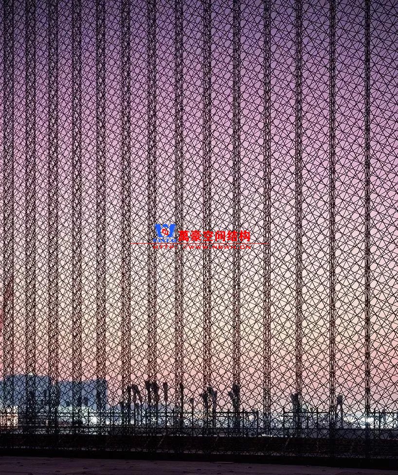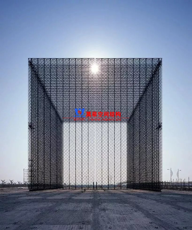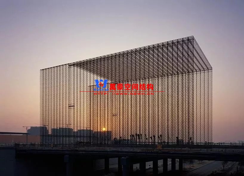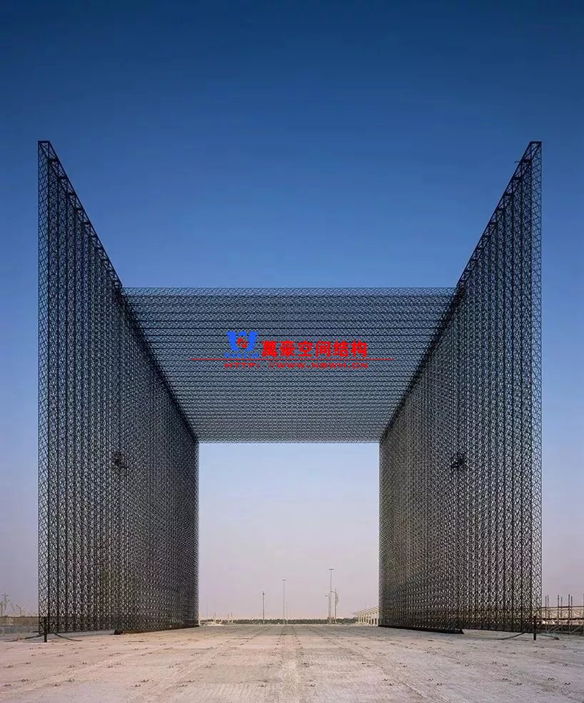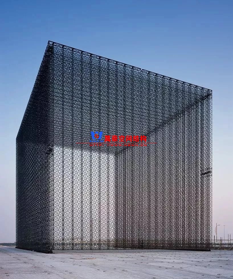 在2020迪拜世博會入口大門的設(shè)計(jì)上,Asif Khan將傳統(tǒng)窗花,一種該地區(qū)廣泛使用的用于調(diào)節(jié)陽光和空氣流通的精細(xì)設(shè)計(jì),進(jìn)行了未來主義的適用。黑色蕾絲形式的立方體同時(shí)創(chuàng)造出神秘的黑暗空隙,湊近看時(shí),會滲透進(jìn)更多的光線。“編織物”在藍(lán)天下描繪了一幅圖案鮮明的壁畫,同時(shí)也在場地上投射出鏡像的陰影,代表著一種藝術(shù)化的,建筑形式的,本土化的歡迎客人的方式。