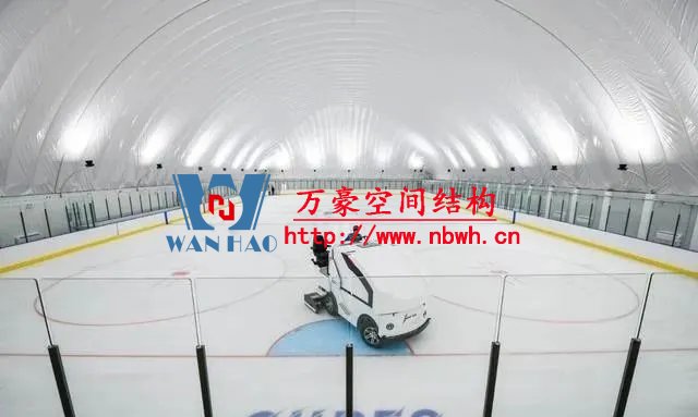 首都體育學(xué)院氣膜滑冰館,是首個模塊化裝配式的直冷冰場。位于海淀區(qū)北三環(huán)西路11號,總建筑面積7010平方米,為地上一層,局部二層的結(jié)構(gòu)。滑冰館內(nèi)部分為南、北兩個場館,每個場館內(nèi)設(shè)有一個奧林匹克標(biāo)準(zhǔn)級冰球場,制冰總面積3600平方米。
