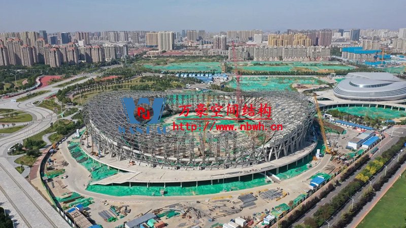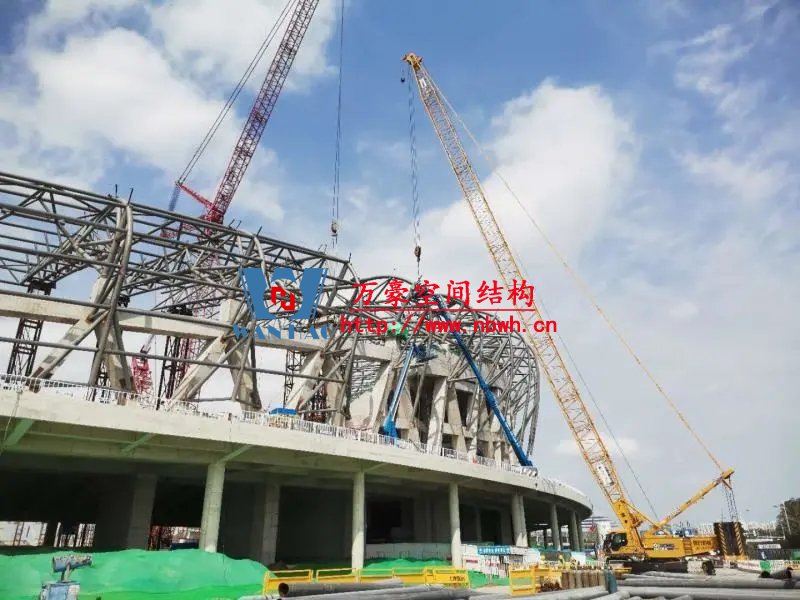 唐山新體育中心項目屋頂主桁架全部吊裝完成