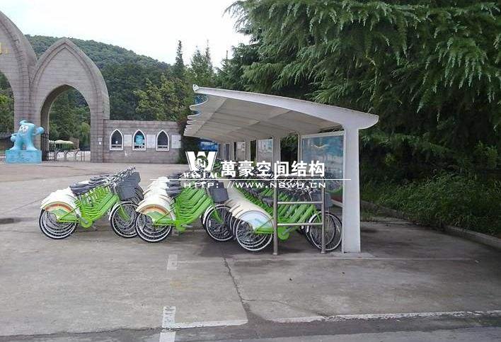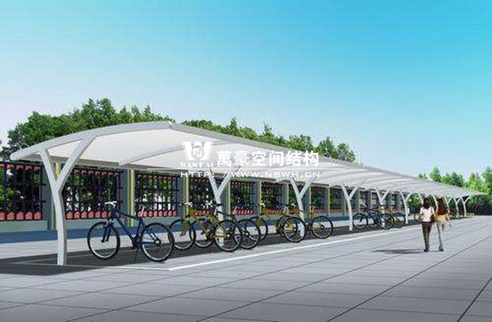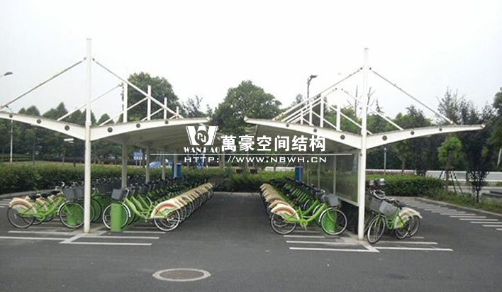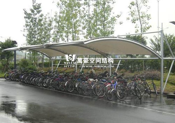 膜結(jié)構(gòu)自行車棚是由多種高強(qiáng)薄膜材料及加強(qiáng)構(gòu)件(鋼架、鋼柱或鋼索)通過(guò)一定方式使其內(nèi)部產(chǎn)生一定的預(yù)張應(yīng)力以形成某種空間形狀,作為覆蓋結(jié)構(gòu),并能承受一定的外荷載作用的一種空間結(jié)構(gòu)形式的自行車棚,是市民停放自行車的固定場(chǎng)所。