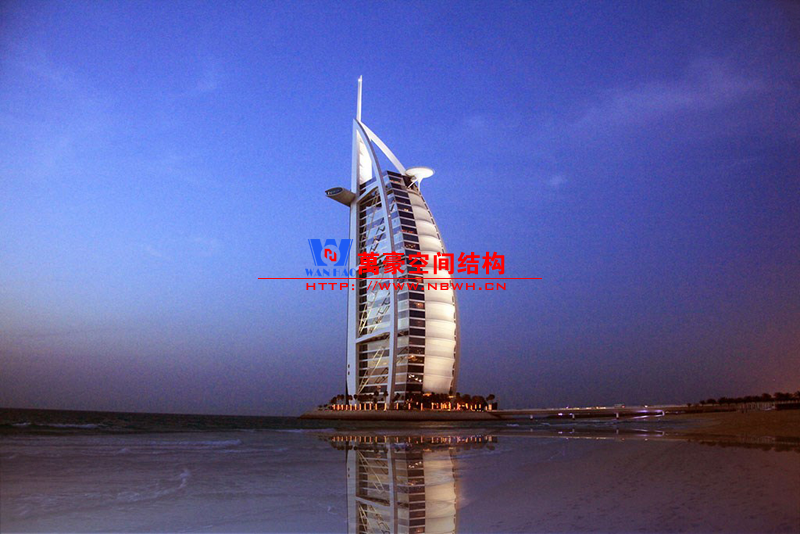 作為理想的膜結(jié)構(gòu)覆蓋材料,膜材要求輕質(zhì)、高強(qiáng)度。中等強(qiáng)度的PVC膜,其厚度僅0.61mm,但它的拉伸強(qiáng)度已達(dá)到鋼材的水平。膜材還對(duì)自然光有反射、吸收和透射能力;它不燃、難燃或阻燃,具有耐久、防火、氣密良好等特性;表面經(jīng)處理(涂覆PVC或PVDF等)的膜材,自身不發(fā)粘,有很好的自潔性能。在環(huán)保方面,目前開(kāi)發(fā)使用的ETFE膜材,已經(jīng)能達(dá)到100%回收再利用。膜材滿足如此多的苛刻條件,加上科學(xué)合理的鋼結(jié)構(gòu)支撐,膜結(jié)構(gòu)能變成各種藝術(shù)造型也就不足為奇了。