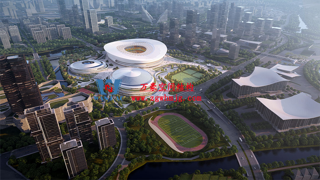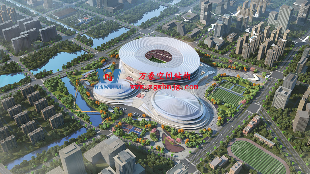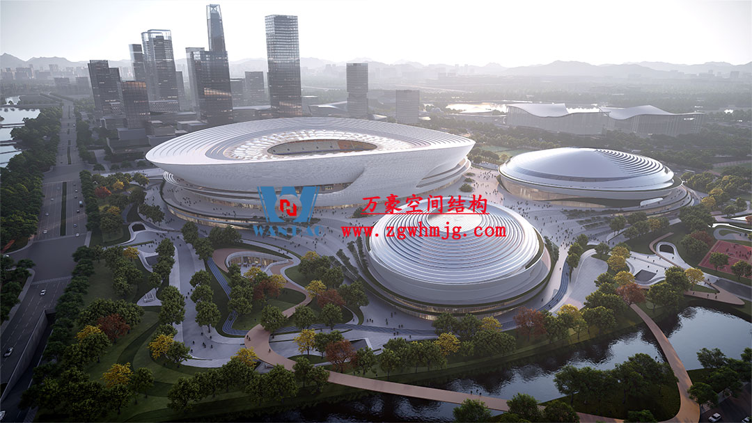 杭州余杭國(guó)際體育中心,位于浙江省杭州市余杭區(qū)杭州未來(lái)科技城.該項(xiàng)目二次鋼構(gòu)用鋼量9000噸,PTFE膜展開(kāi)面積40000平方米,是長(zhǎng)三角最大覆殼式膜結(jié)構(gòu)體育建筑。