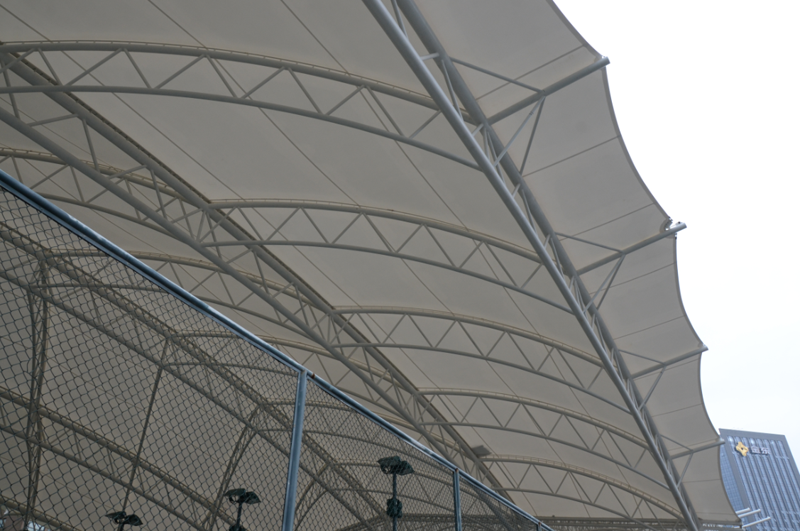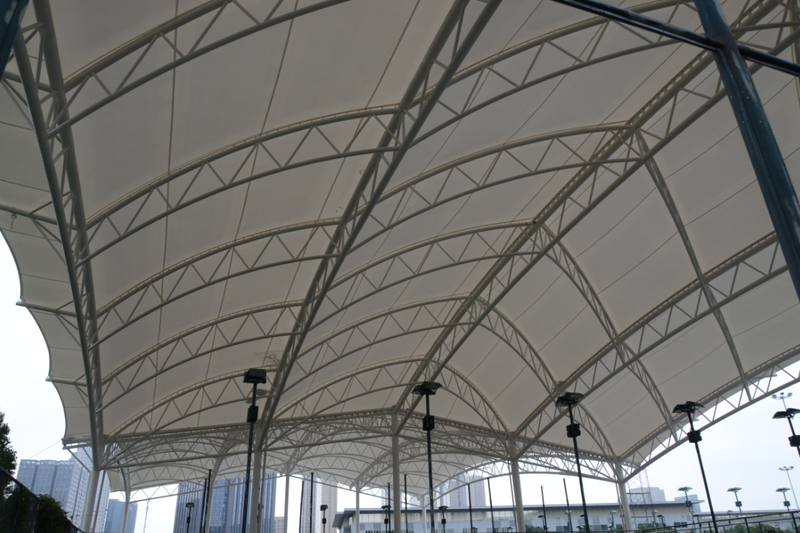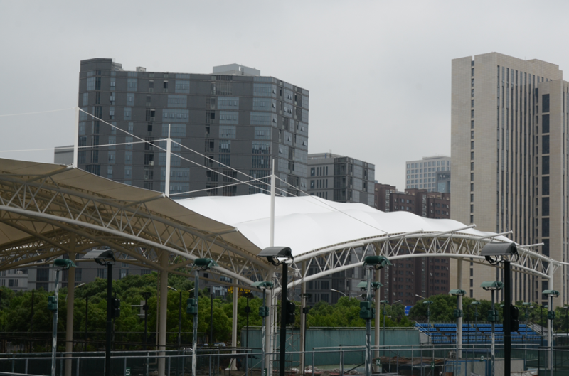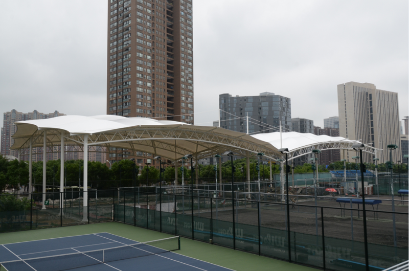 鄞州網(wǎng)球場(chǎng)膜結(jié)構(gòu)工程位于寧波市鄞州區(qū)首南街道文華路199號(hào)【寧波(鄞州)網(wǎng)球中心內(nèi)】,膜結(jié)構(gòu)球場(chǎng)展開面積約3700平方米。項(xiàng)目為單片網(wǎng)球場(chǎng)罩篷。采用骨架式結(jié)構(gòu)體系,集休閑、運(yùn)動(dòng)、標(biāo)志性建筑于一體。鋼結(jié)構(gòu)采用Q235B高頻焊管,膜材采用進(jìn)口建筑膜材,顏色為白色。