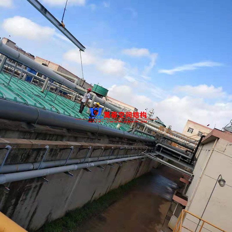 浙江東邦藥業(yè)有限公司污水池(好氧池)加蓋密閉膜結(jié)構(gòu)工程位于浙江省臺州市臨海市東邦藥業(yè)有限公司內(nèi),此工程用鋼量50噸,膜結(jié)構(gòu)展開面積2500平米,由寧波萬豪空間結(jié)構(gòu)工程有限公司承建。