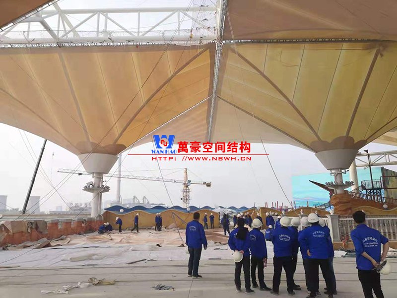 近日,萬(wàn)豪空間結(jié)構(gòu)組織員工進(jìn)行了重大項(xiàng)目現(xiàn)場(chǎng)學(xué)習(xí)觀摩會(huì)。此次現(xiàn)場(chǎng)學(xué)習(xí)觀摩的項(xiàng)目,分別是青島紅島國(guó)際會(huì)展中心PTFE反吊膜結(jié)構(gòu)工程以及聊城歡樂(lè)小鎮(zhèn)七彩云朵項(xiàng)目膜結(jié)構(gòu)工程。