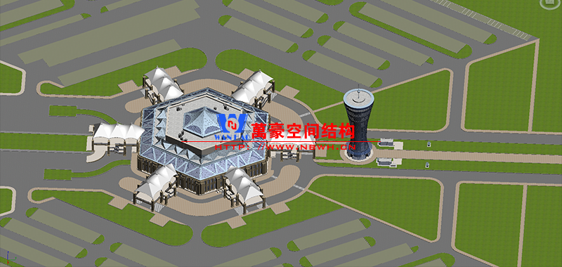 該項(xiàng)目分小蠻腰觀光塔和六角主樓兩部分,其中小蠻腰觀光塔由雙曲面空間鋼結(jié)構(gòu)相互交叉形成幾何形的外掛玻璃組成,主樓由雙曲面穹頂及6條連廊組成。鋼結(jié)構(gòu)跨度35米,鋼膜總面積28000平米,鋼結(jié)構(gòu)用鋼量1100噸。建筑內(nèi)部空間明亮通透,遠(yuǎn)觀猶如大漠孤煙中的鹽湖之晶,近觀仿佛置身于鹽湖中的浪漫滿屋。