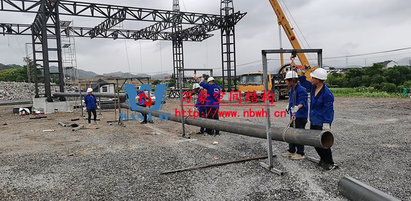 紹興西高速收費(fèi)站頂棚工程用鋼量80噸,由寧波萬豪空間結(jié)構(gòu)工程有限公司加工和安裝。 目前,項(xiàng)目鋼結(jié)構(gòu)安裝完成。 期待整個(gè)工程的完工,來領(lǐng)略它別致的風(fēng)采。