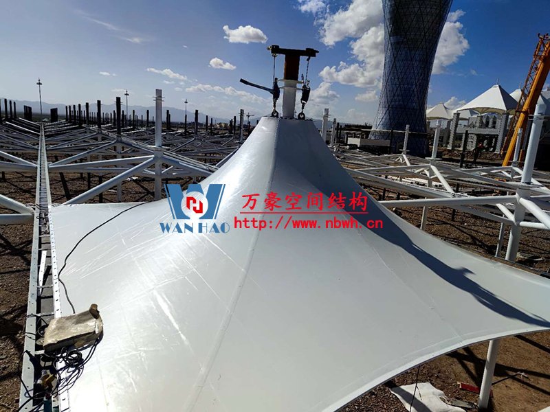 烏蘭縣茶卡景區(qū)旅游扶貧基礎(chǔ)設(shè)施項(xiàng)目(二期)膜結(jié)構(gòu)工程位于青海省海西蒙古族藏族自治州烏蘭縣茶卡景區(qū),工程用鋼量200噸,膜結(jié)構(gòu)展開(kāi)面積6000平米。