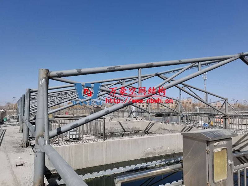 該工程主要建設(shè)格爾木工業(yè)園昆侖工業(yè)區(qū)工業(yè)污水處理廠首期2.5萬立方米/天工程二沉池、水解酸化池和預(yù)沉池池體保溫膜結(jié)構(gòu)安裝。項目用鋼量230噸,膜結(jié)構(gòu)展開面積5000平米。