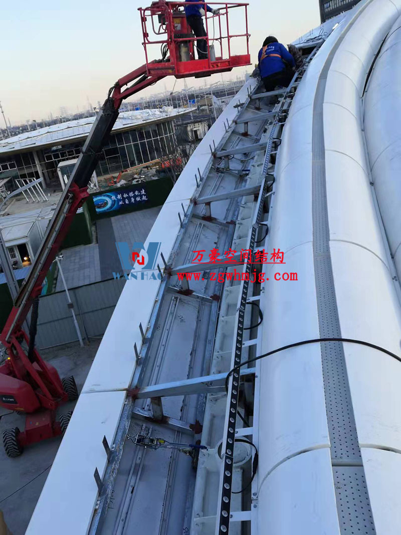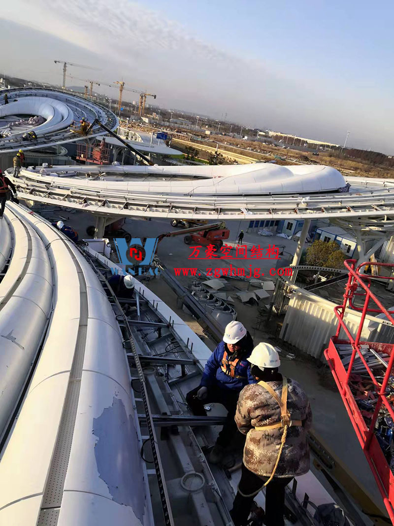 滬通鐵路張家港站地方配套工程-站前西側旅客集散區(qū)蝴蝶造型天幕工程擬建結構為蘇州張家港高鐵站站前廣場蝴蝶造型雙曲面殼體膜結構,共分為大、小翅膀四部分。