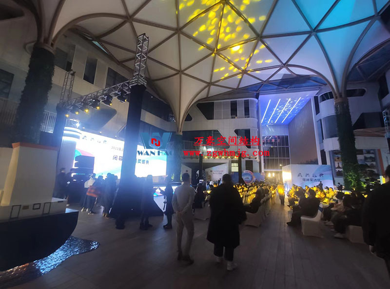 其中膜鋼構(gòu)工程為寧波萬豪空間結(jié)構(gòu)工程有限公司承建,該項(xiàng)目用鋼量260噸,PTFE膜結(jié)構(gòu)展開面積3500平方米,ETFE膜結(jié)構(gòu)展開面積1500平方米。