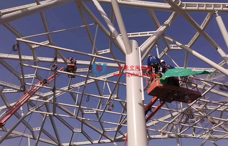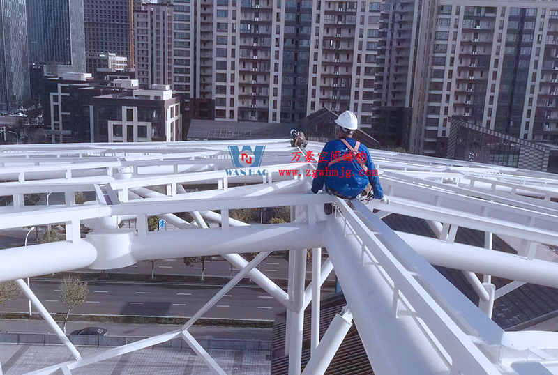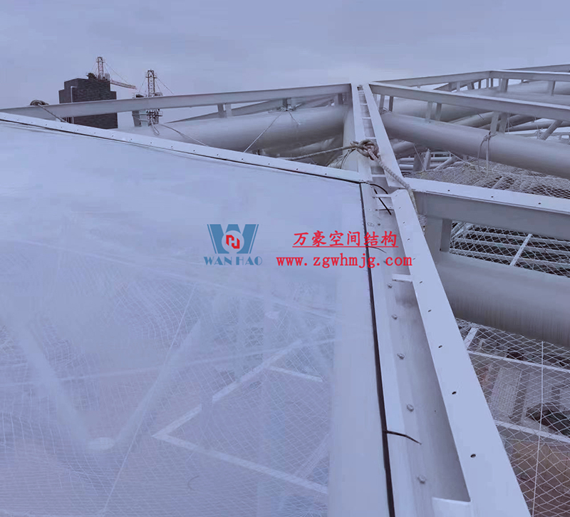 最近項(xiàng)目不斷傳回最新施工進(jìn)展,目前鋼構(gòu)主體已經(jīng)完成,油漆的涂刷、二次鋼構(gòu)以及排水管道的安裝也已接近尾聲,現(xiàn)在進(jìn)行最后的收尾工作。樣品膜的試裝也已完結(jié),等待后期整體鋼構(gòu)以及排水管安裝完畢,開始進(jìn)行膜體的安裝。期待工程的整體完工,讓我們能夠盡早一飽眼福。