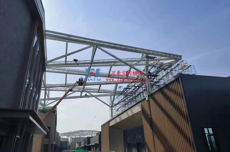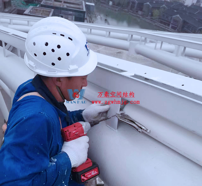 文一塘溪津門天幕鋼結(jié)構(gòu)及ETFE氣枕膜工程由寧波萬豪空間結(jié)構(gòu)工程有限公司承建,該項(xiàng)目用鋼量900噸,膜結(jié)構(gòu)展開面積7000平米。今年以來,萬豪施工團(tuán)隊(duì)緊抓時(shí)間節(jié)點(diǎn),工程進(jìn)度推進(jìn)迅速。