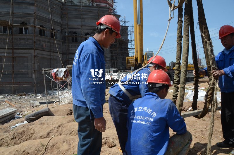橫店圓明新園俄羅斯館屋頂整體吊裝順利完成,300多噸的大吊車,20多噸重的鋼結(jié)構(gòu)裝飾球,80米高的作業(yè)平臺(tái),在萬豪現(xiàn)場(chǎng)管理人員和工人的緊密協(xié)調(diào)下,經(jīng)過一周的晝夜努力終于大功告成,本次吊裝從4月17日開始,前期天氣晴朗無風(fēng),是吊裝的好天氣,吊裝也是順利進(jìn)行,之后的幾天陰雨不斷,大家為了吊裝盡快順利完成,在雨小的時(shí)候冒雨進(jìn)行吊裝,終于在4月22日吊裝正式完成。