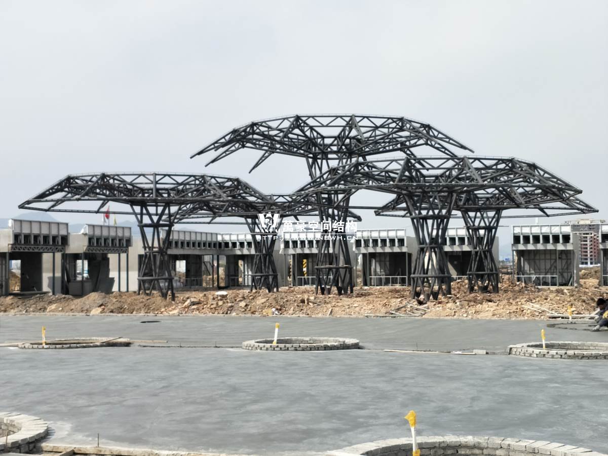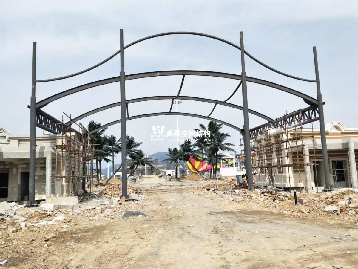 該圖片為項(xiàng)目大門,鋼梁單跨度達(dá)到22米,這么長的跨度我們對焊接質(zhì)量和鋼材質(zhì)量要求也是很高的,保證穩(wěn)定性和安全性!