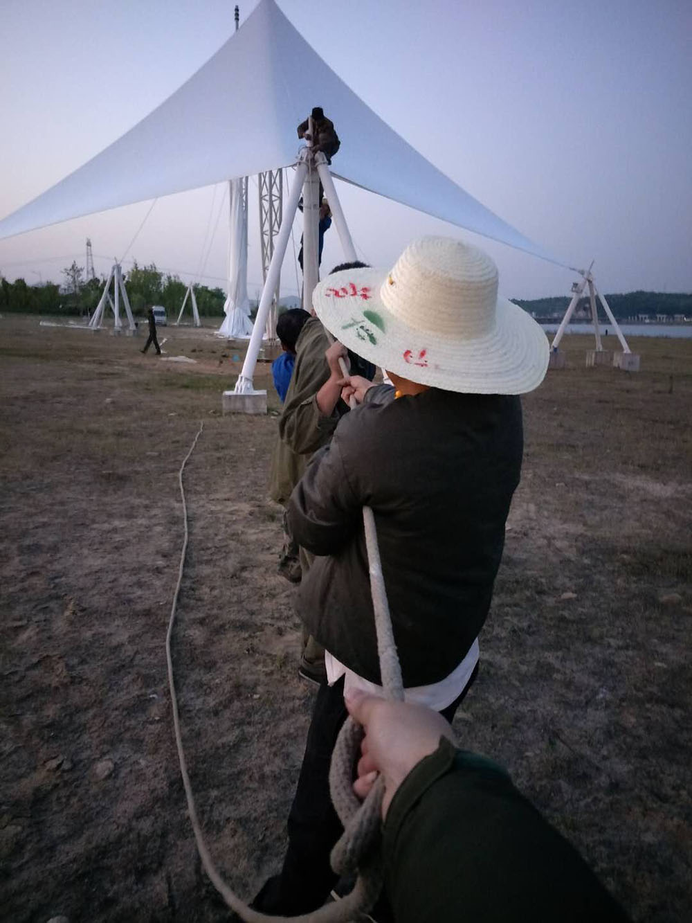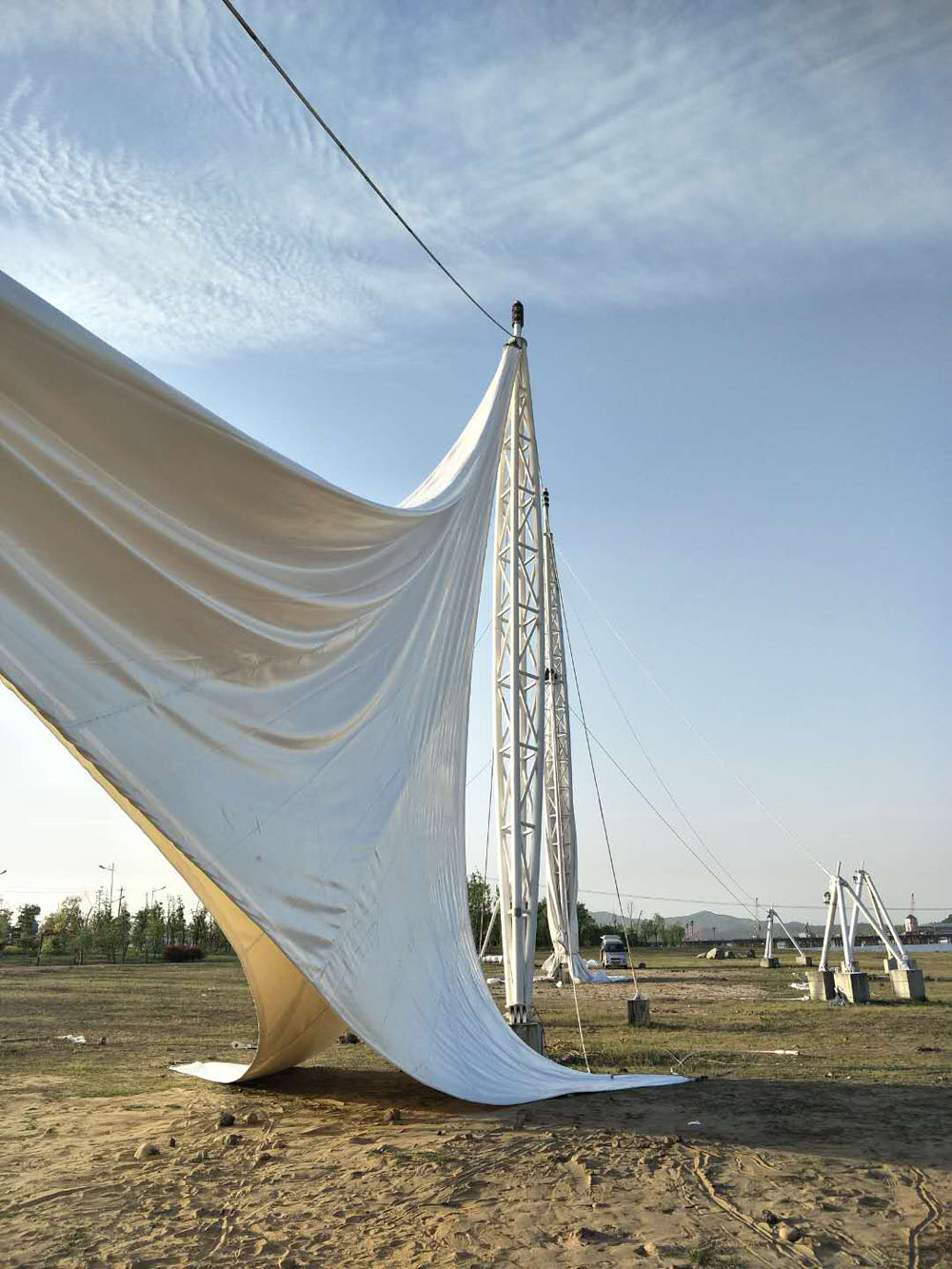 高橋?yàn)超F(xiàn)代產(chǎn)業(yè)園單飛燕、雙飛燕景觀膜結(jié)構(gòu)工程已近尾聲